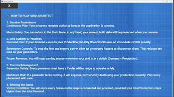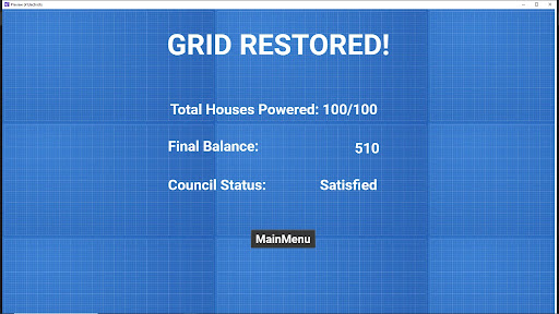FEATURES Blueprint Aesthetic: A clean, professional technical interface. Persistent Simulation: Your grid stays active even if you head back to the main menu. High-Stakes Management: One wrong connection can trigger a chain reaction of fines and meltdowns. Can you light up all 100 houses without the Council shutting you down?